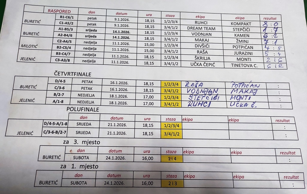 | 3. kolo srijeda, 21. siječnja 2026. POLUFINALA - U 18.15 SATI | ||